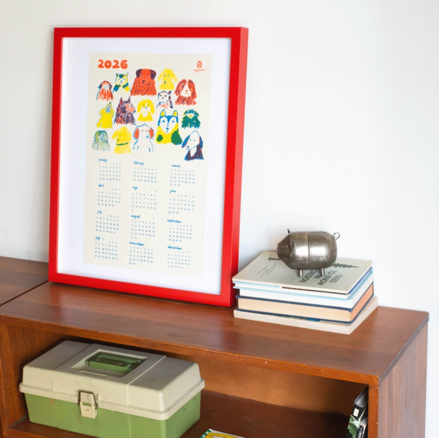 This 2026 reference calendar is printed on toothy, textured cover stock with vibrant Risograph inks. Frame it, hang it, or tack it up in your office or kitchen for a bit of cheeky & elevated decor.