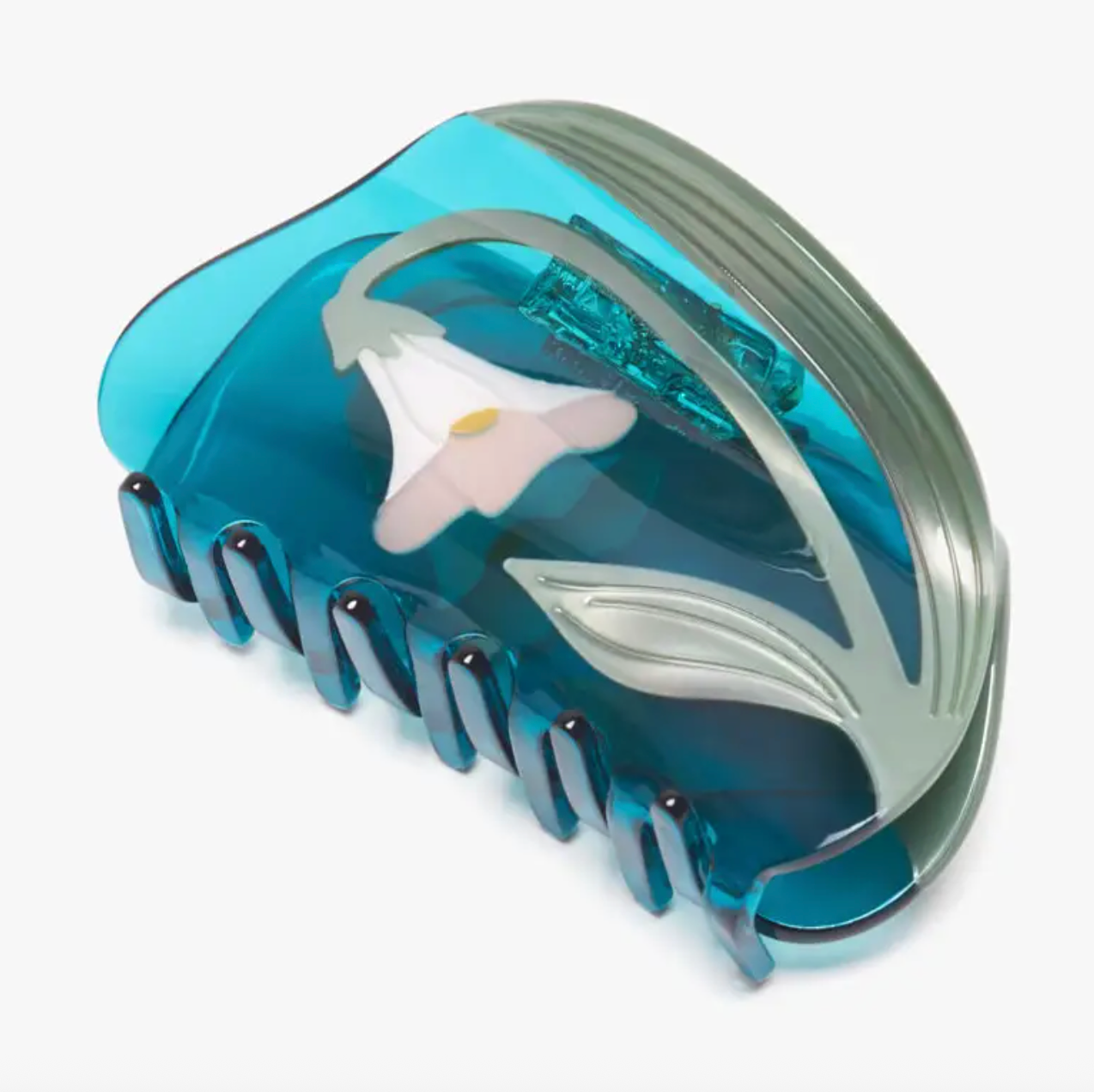 Alba is a delicate white bloom opens for a brief moment in time, fading away in the sunset. This teal blue transparent claw captures the beauty of this white flower.