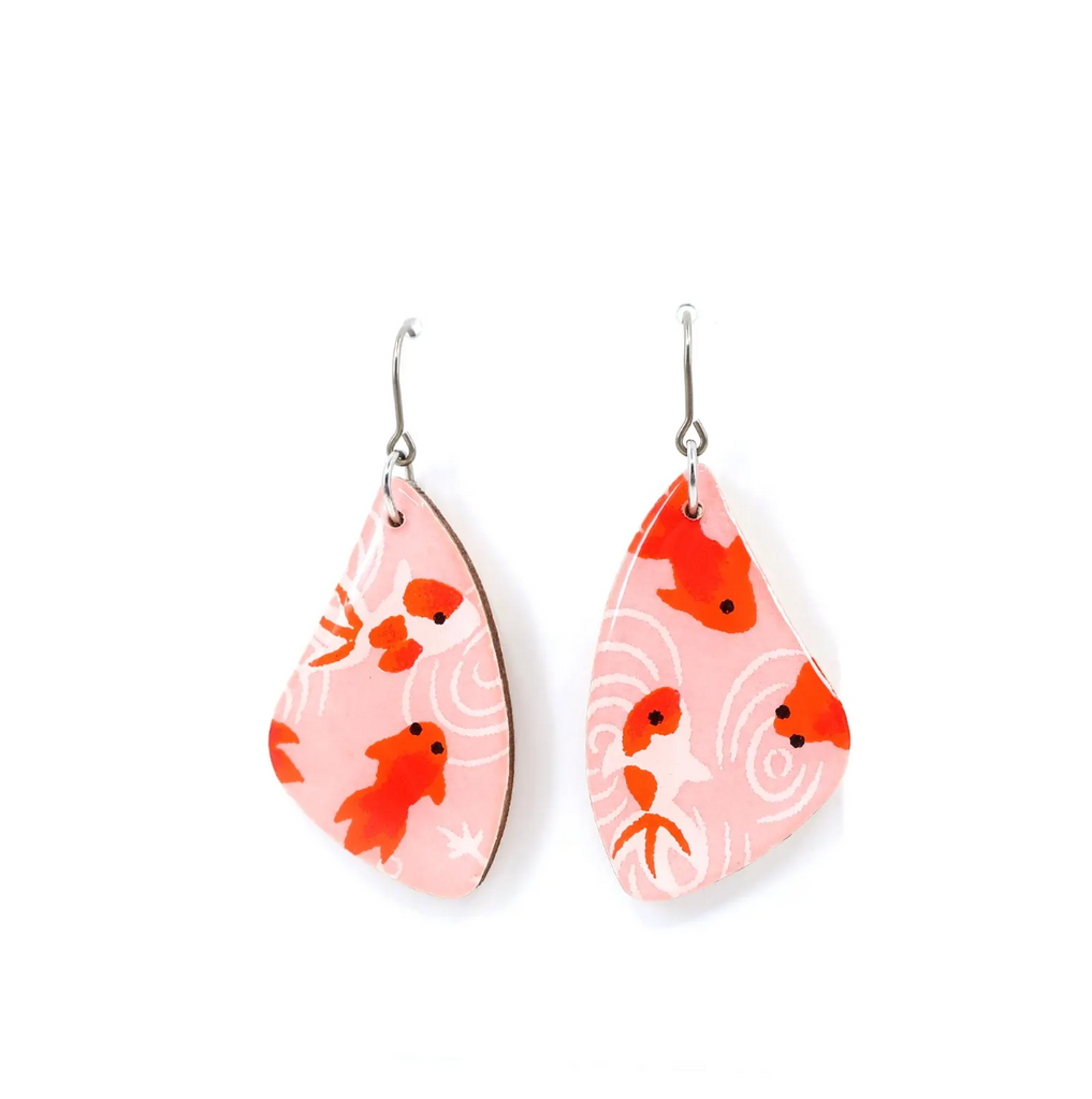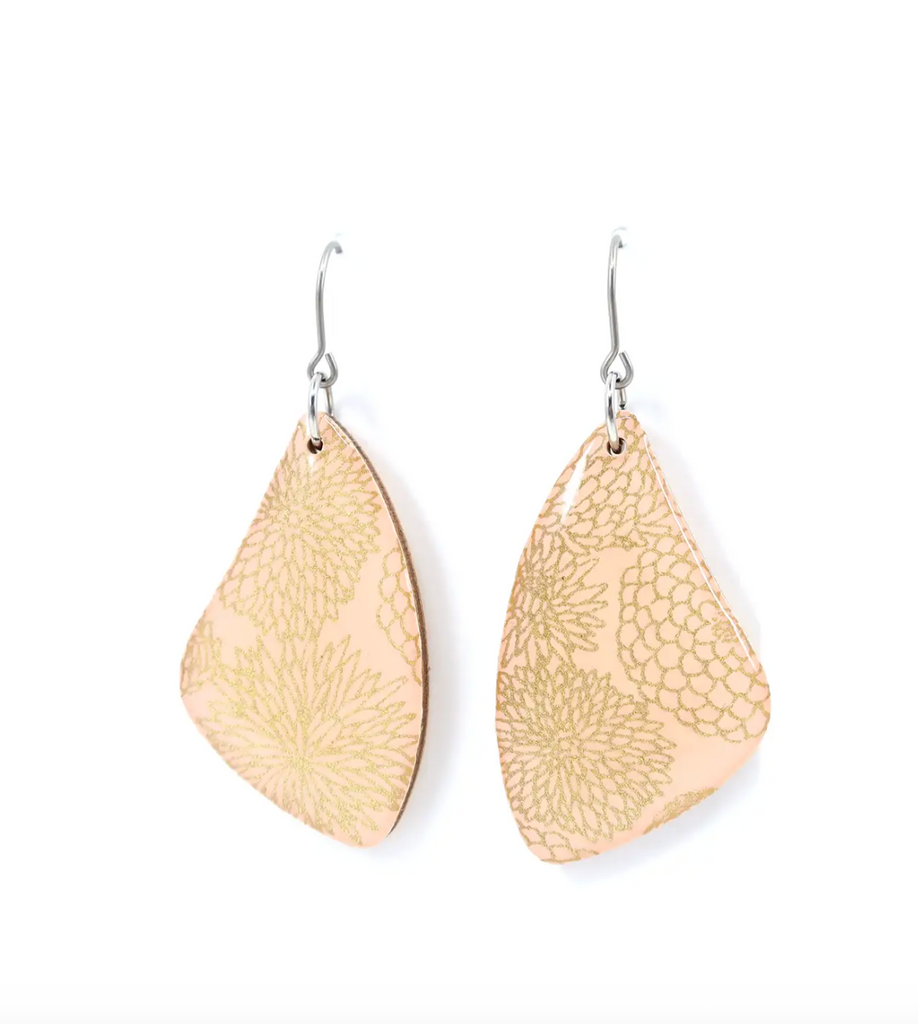 These earrings will add a pop of color and pattern to any outfit. These are handmade just over the river in Naselle, WA by Aki of Autumn + Tree from handmade Japanese and European papers. Because these are made with laser cut wood, they are very light and comfortable to wear all day!
