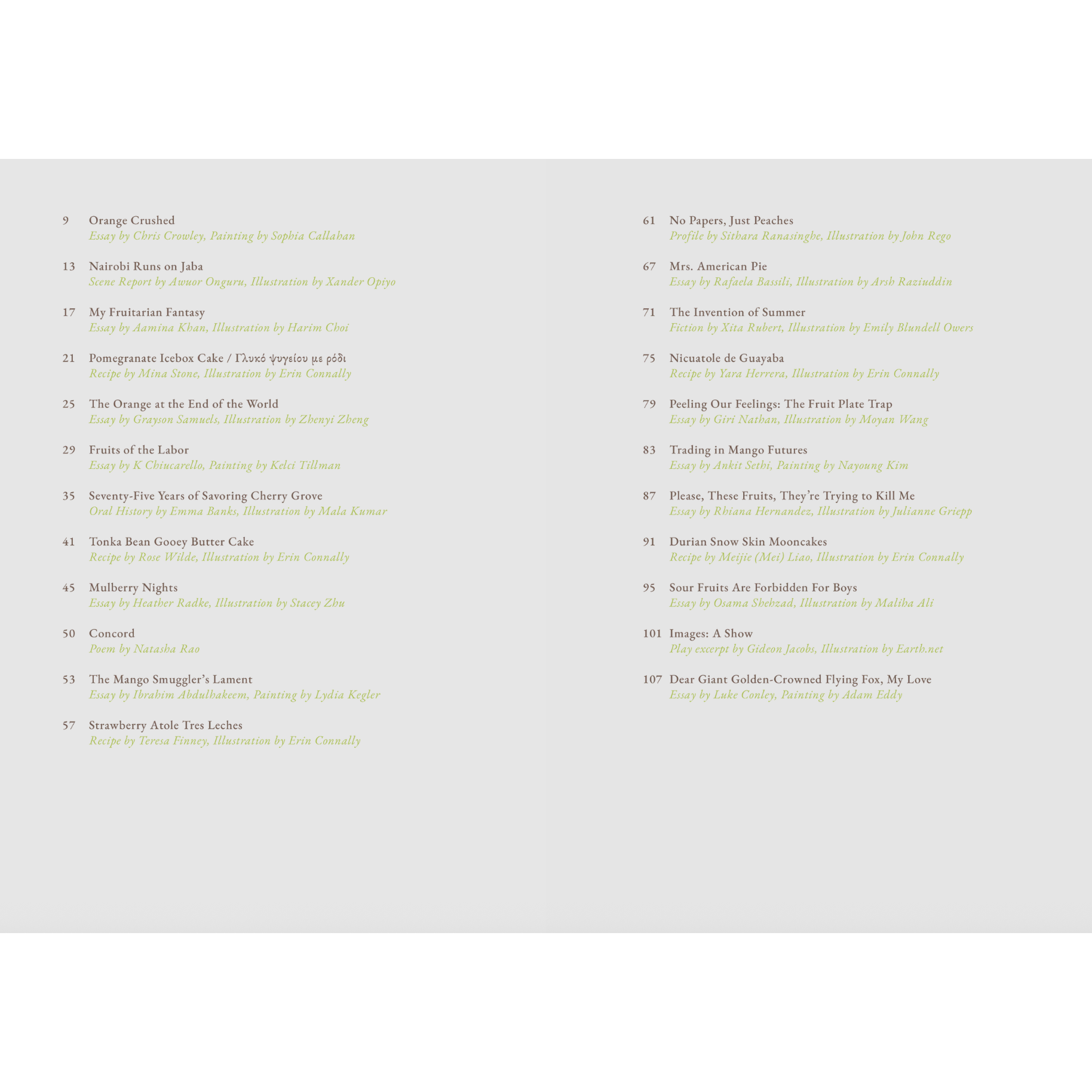 - Recipes to fuel our deepest produce cravings: durian snow skin mooncakes by Mei Liao, pomegranate icebox cake by Mina Stone, gooey tonka bean butter cakes by Rose Wilde, guava nicuatole by Yara Herrera, and strawberry atole cake by Teresa Finney.