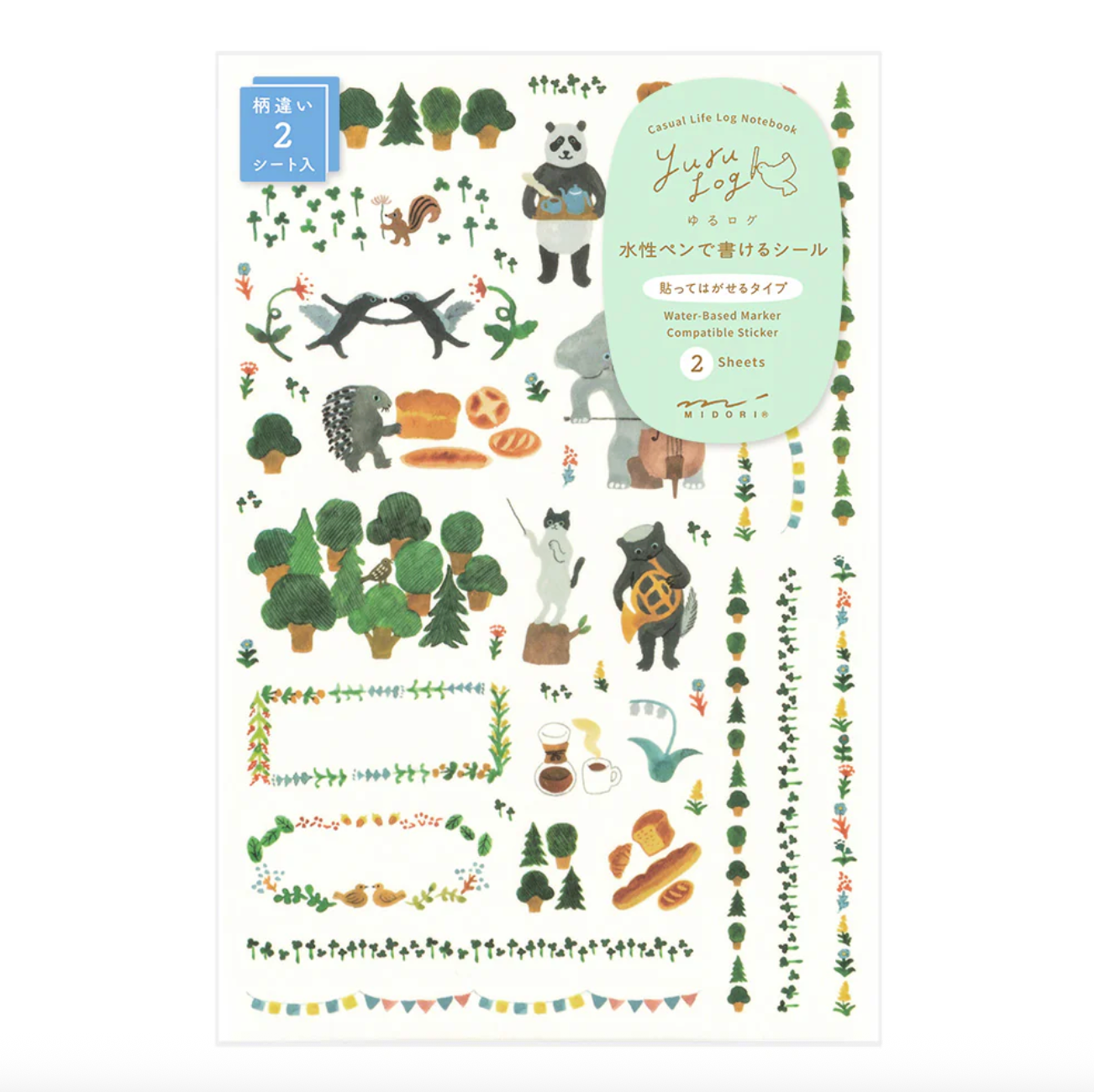 Pair these stickers with the Forest Animals Yuru Log to decorate gaps or emphasize what you're writing, making the Yuru Log notebook even more unique to you. These can also be written on it with water-based pens thanks to a special coating applied to the surface of the Japanese paper.