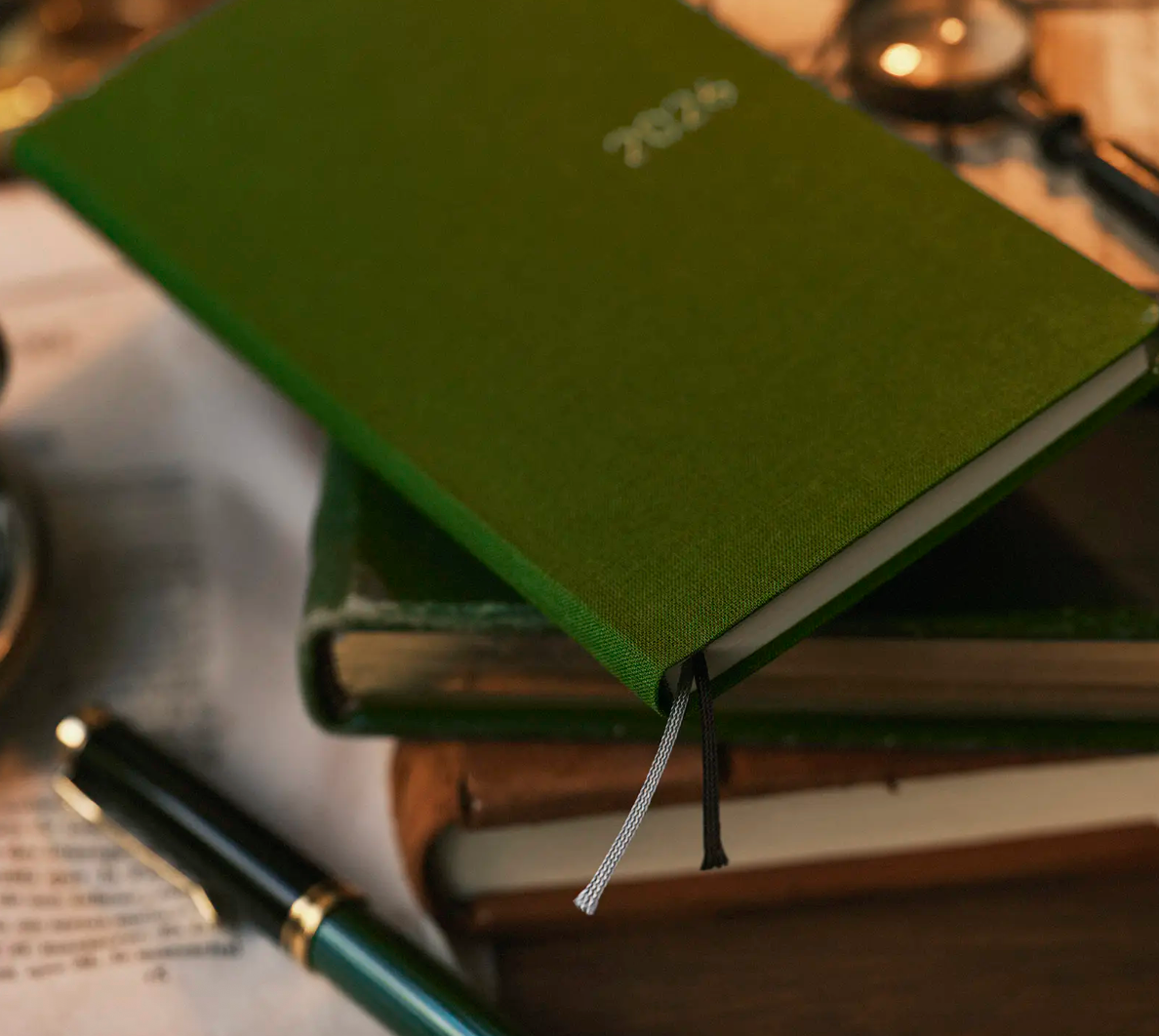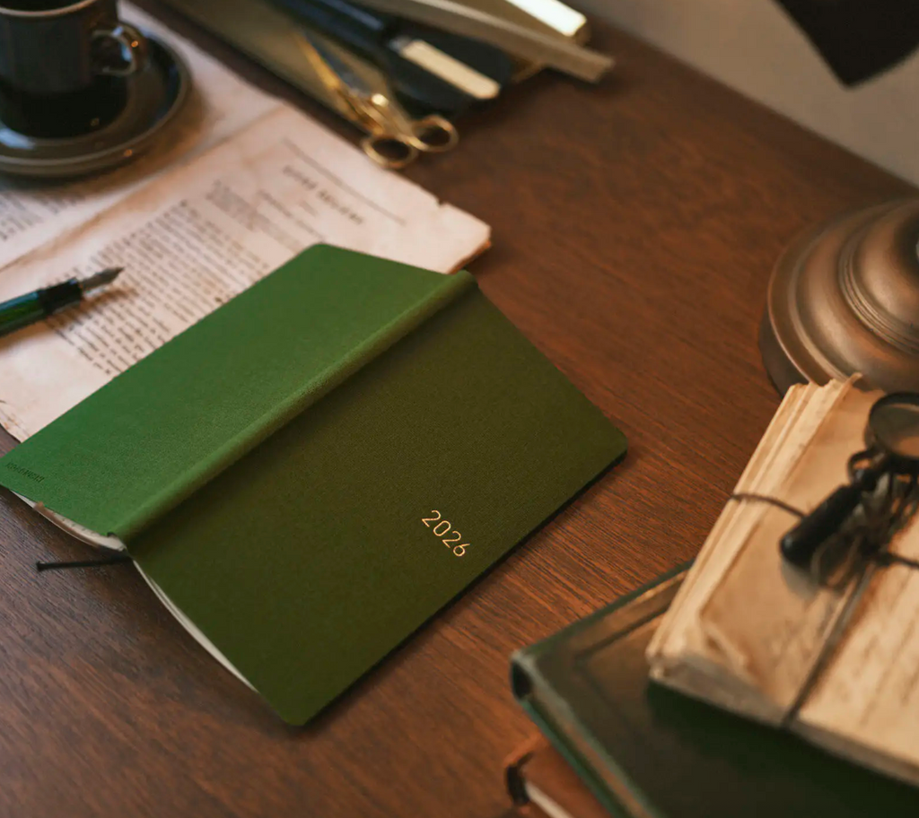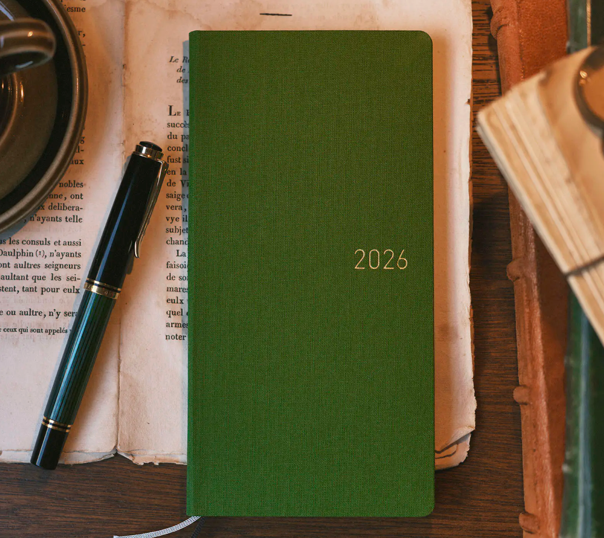 Antique Green is a warm, deep green color. The gold-foiled 2026 on the front cover evokes the brass detailing on antique furniture, adding a sense of elegance. This Weeks planner has a timelessly beautiful design.