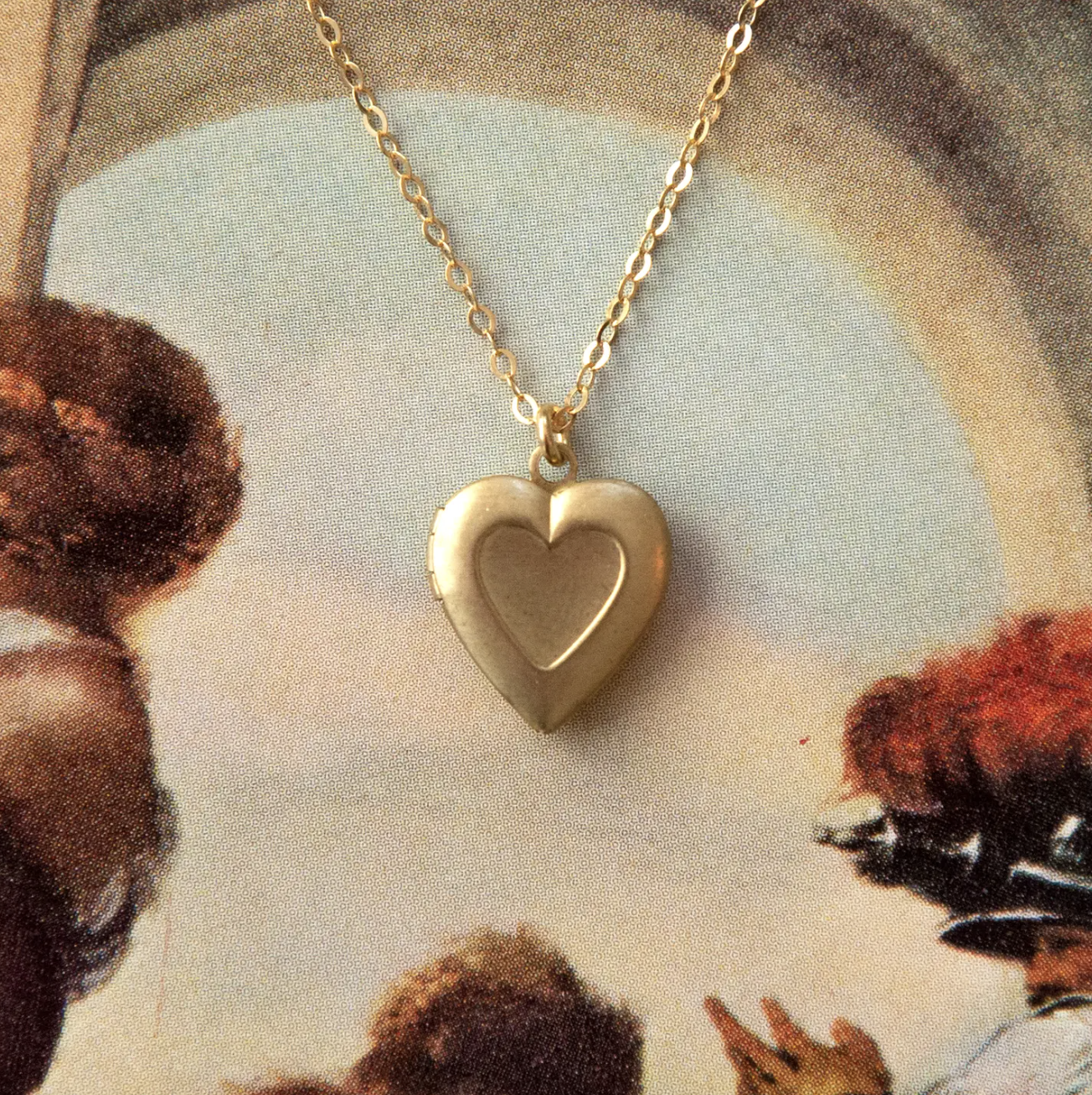 Deadstock vintage simple brass heart locket charm on a high-quality gold vermeil (gold plated sterling silver) cable chain. Locket opens!