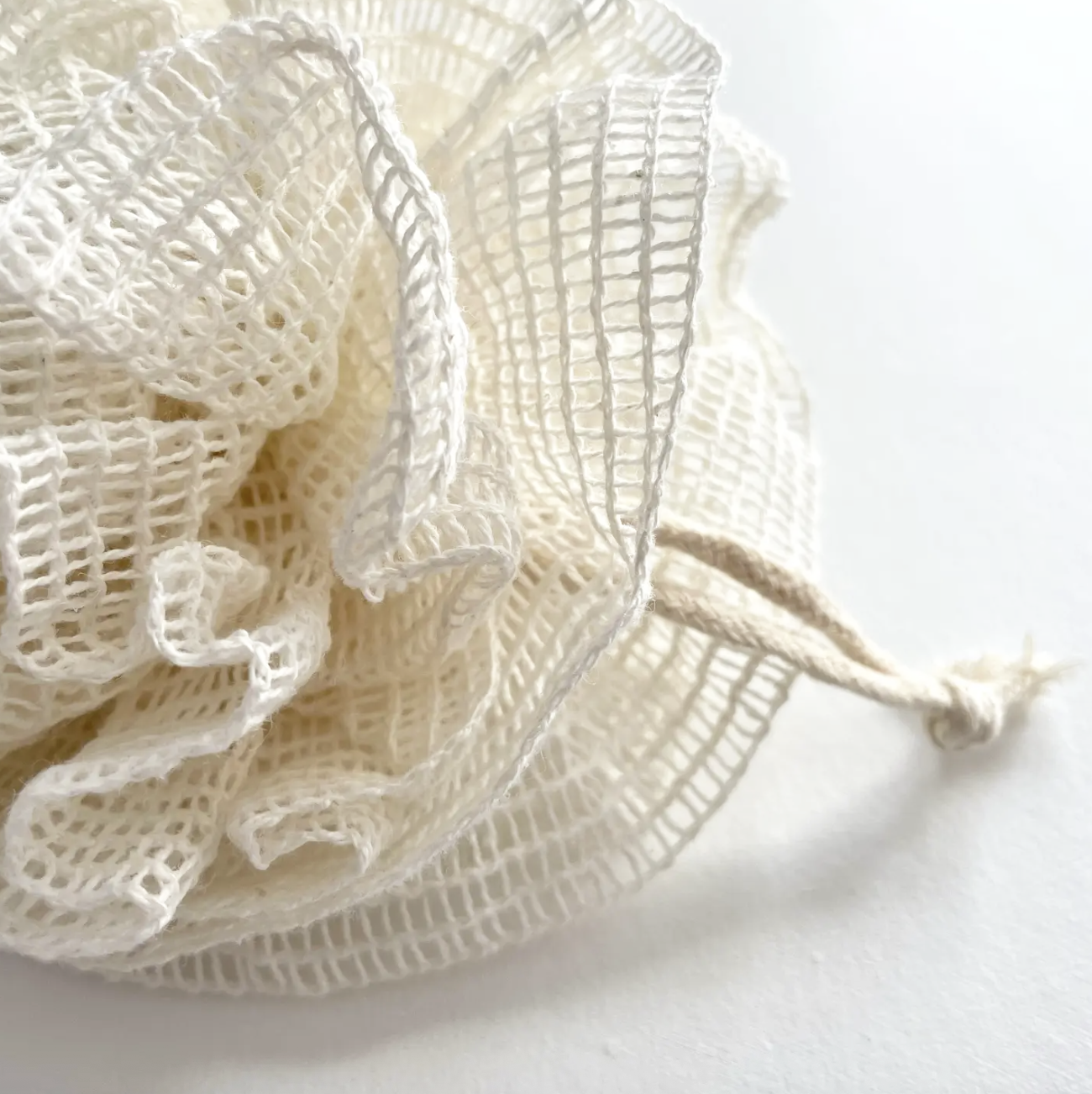 Switch out a nylon bath pouf for a more sustainable natural ramie (plant) fiber version that can be washed, reused, then composted after it has lived its life. Use as you would a normal pouf by adding shower gel and lathering. Ramie fabric is naturally resistant to mold, mildew, and bacteria, making it the perfect material for the humid bath environment! The mesh body is ideal for gentle daily cleaning and exfoliation.