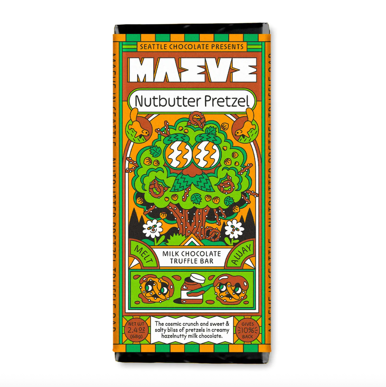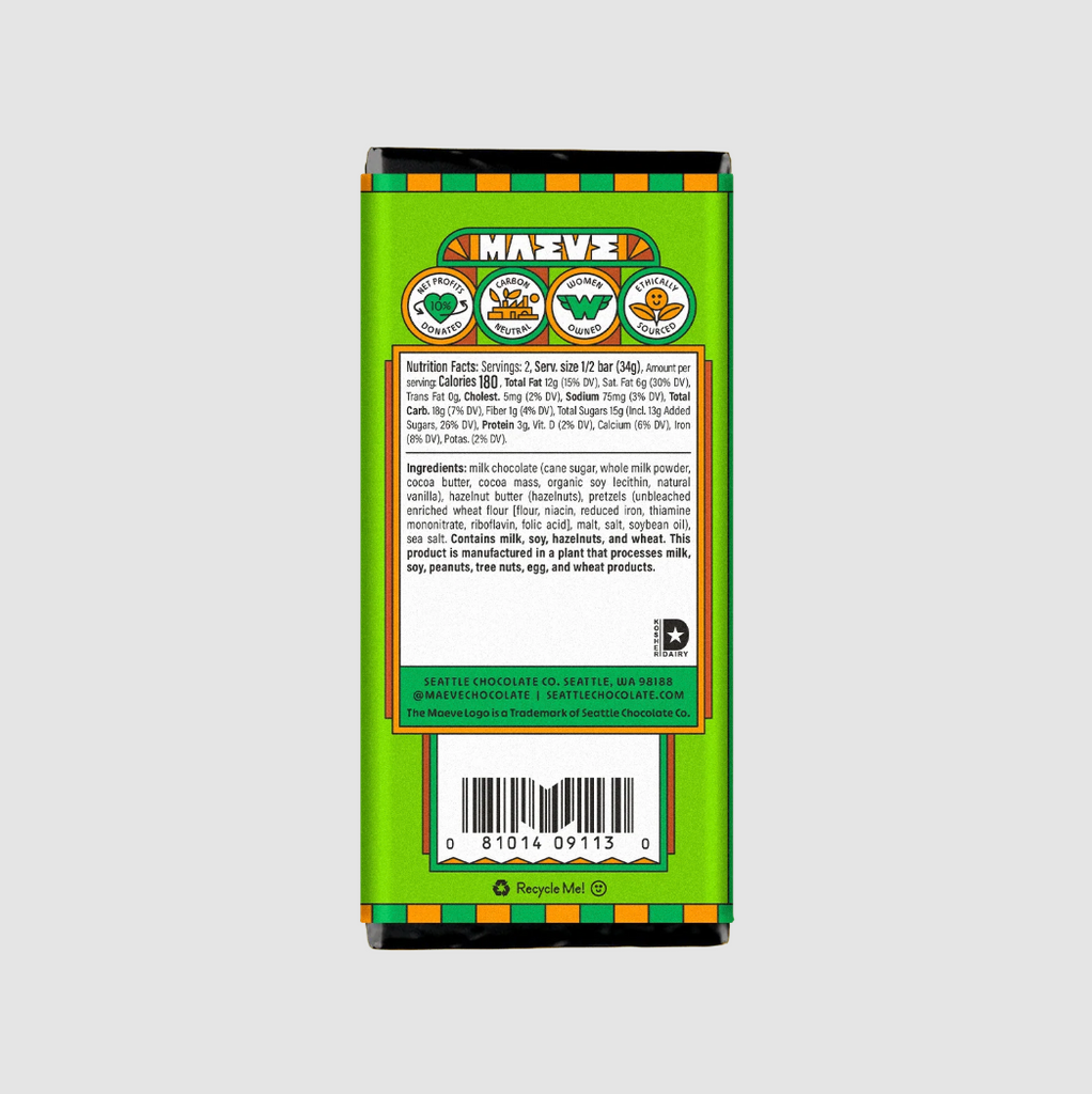 OK dig this. What if we put hazelnut butter AND pretzels together in a chocolate truffle bar? What if we layered on some milk chocolate too? I’m freaking out, man. Wait, Maeve already did a bar like this? Well, hand me a bite! Don’t bogart the chocolate!