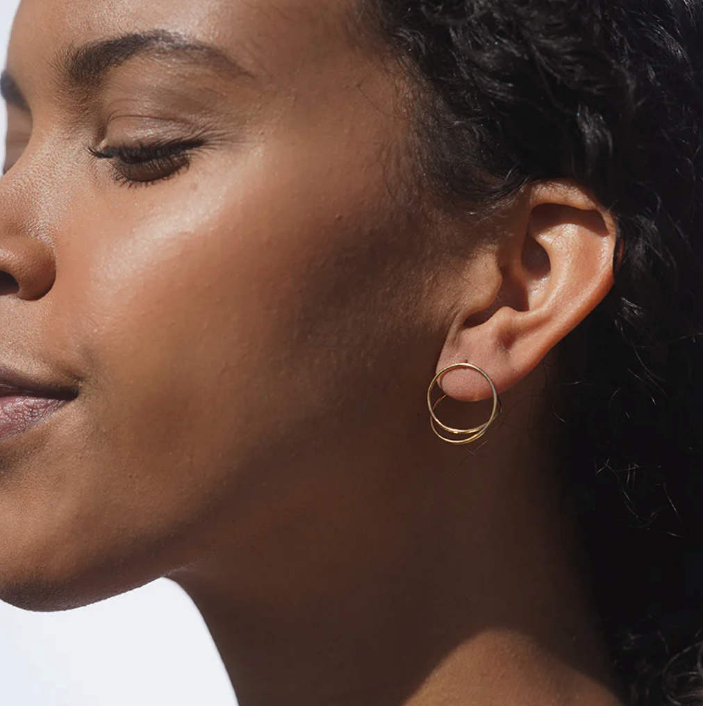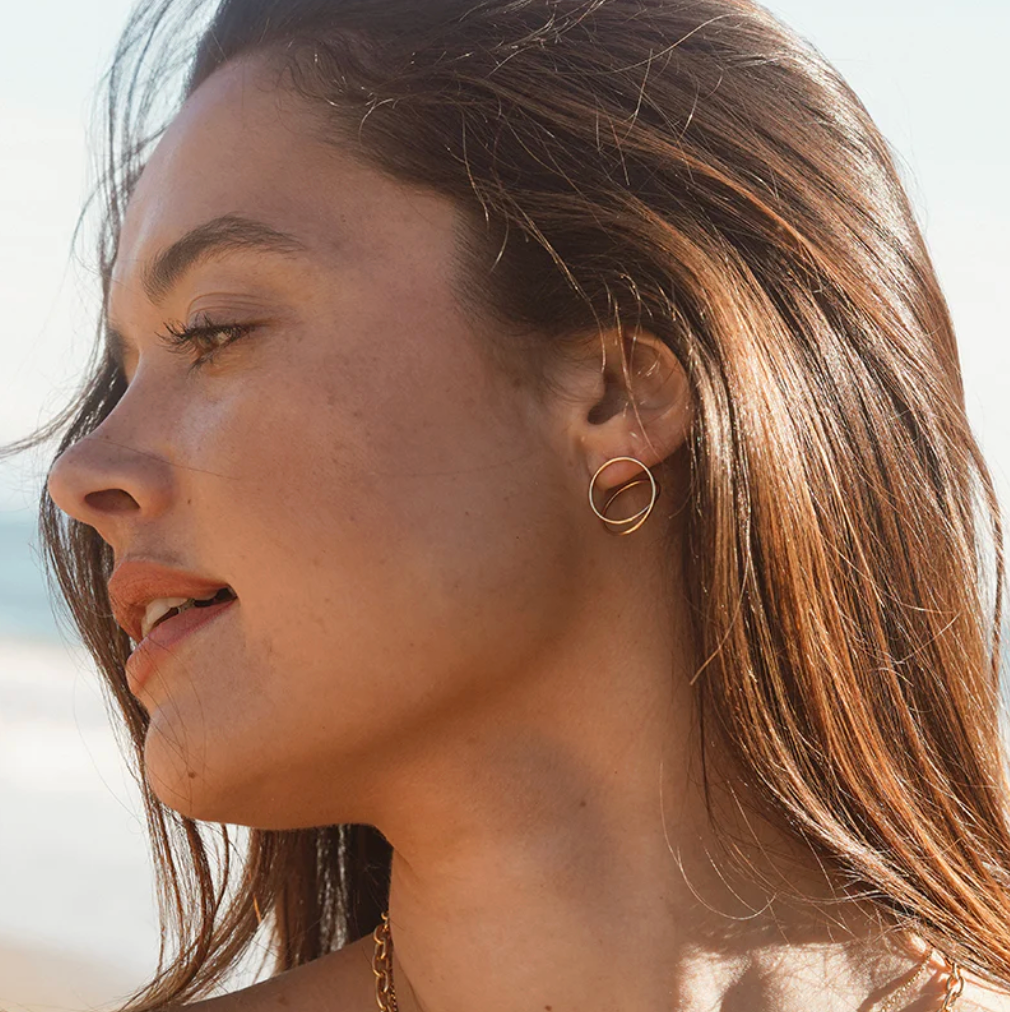 The Oro stud earring from Baleen is a hand-formed sculptural wire earring that looks different from every angle.