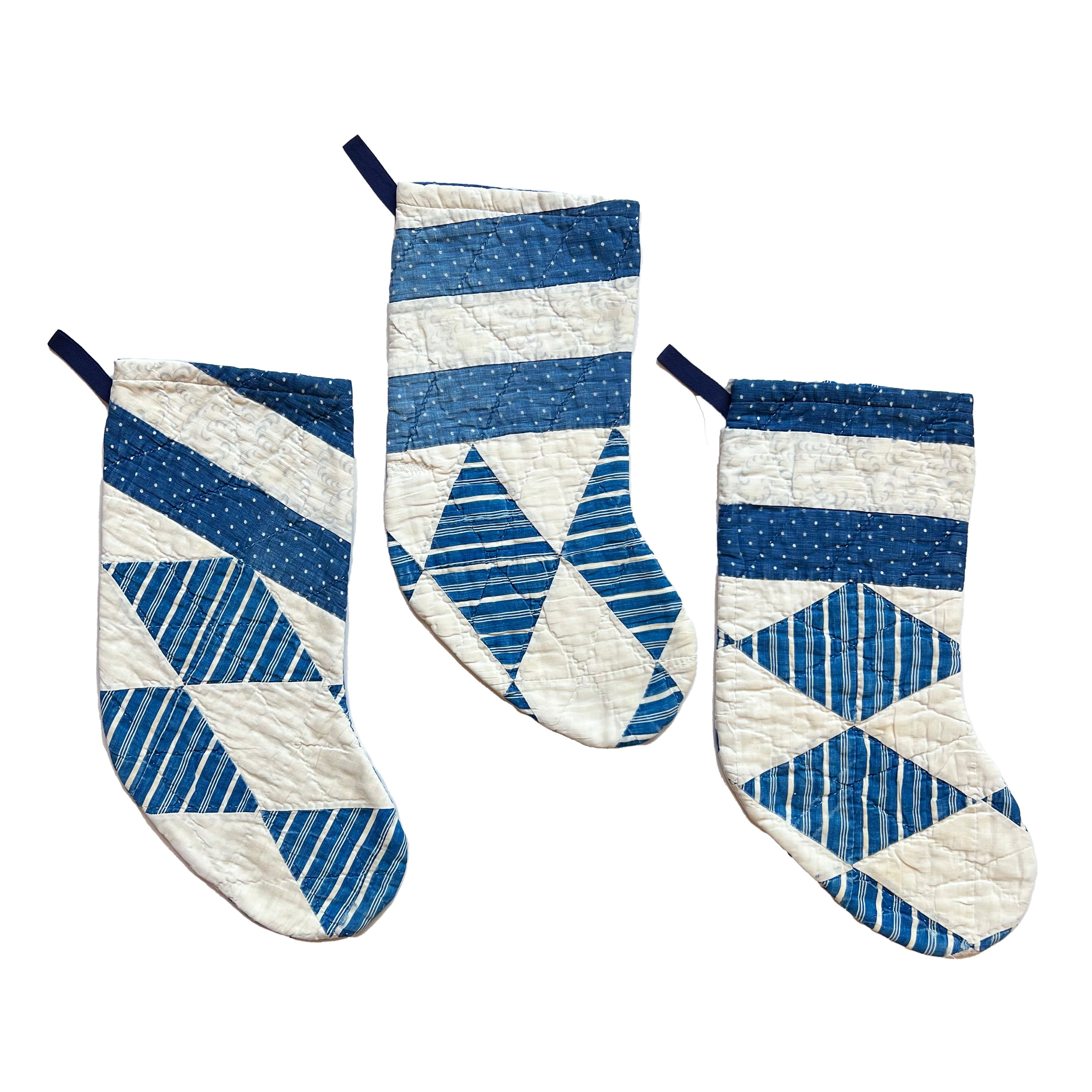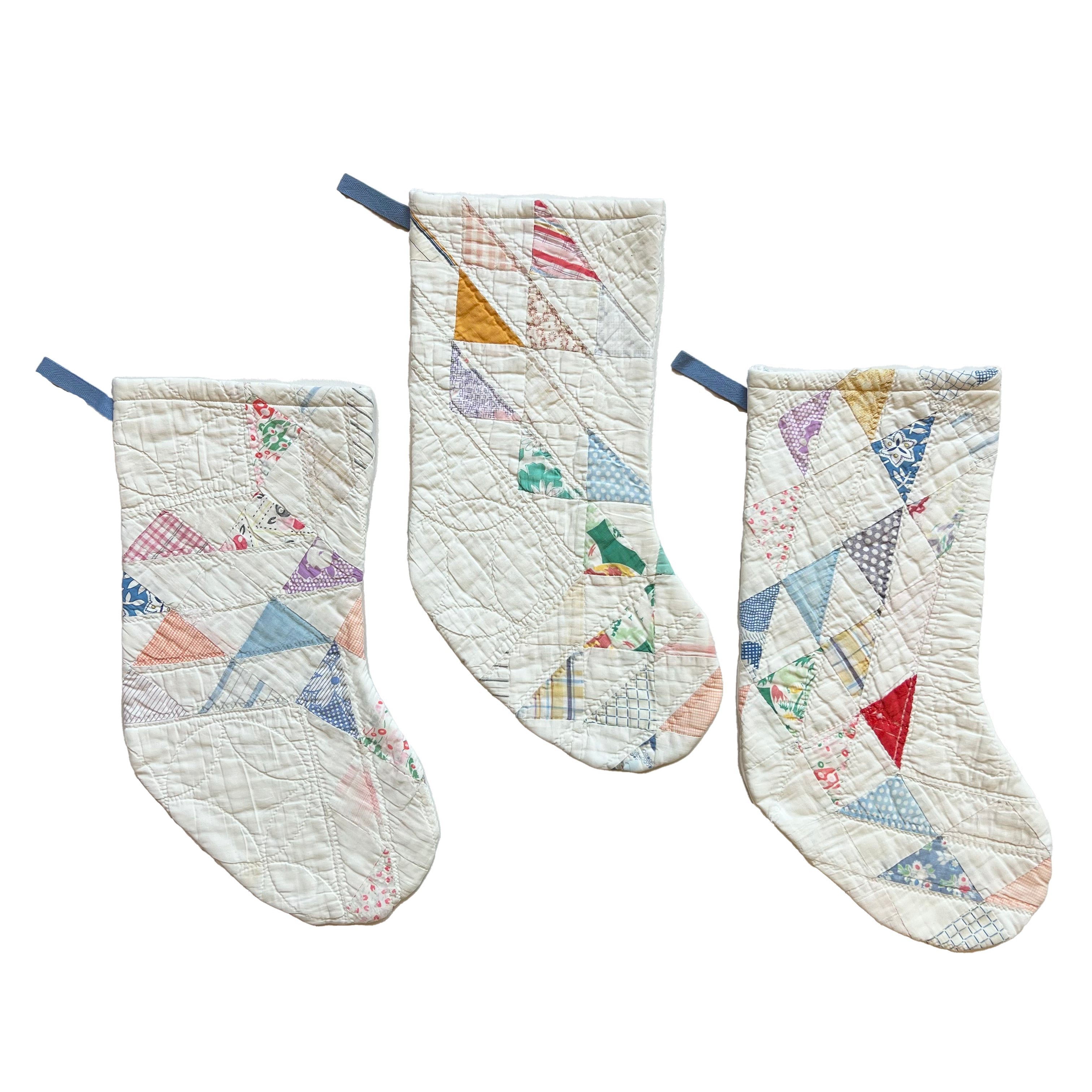 Please note: each stocking is cut from a different part of the quilt, so the actual stocking you receive may vary from the photos. Because these quilts are vintage and have lived a lot of life, there may be fading, discoloration, wear or small, light stains that you would expect to see on a well-loved and very old textile. It's part of their charm.