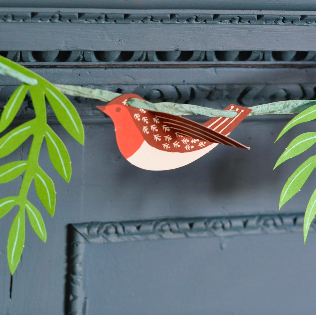 Pop out and string together on yarn or ribbon of your choice. The leaves and birds make approximately 2-3 meters (6-10 feet) of garland, depending on how closely they are strung together. Thread is not included.