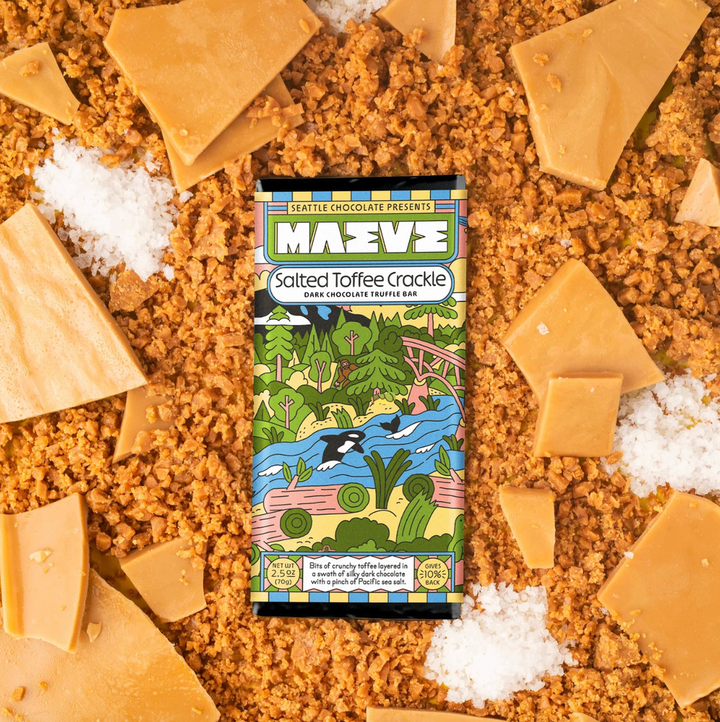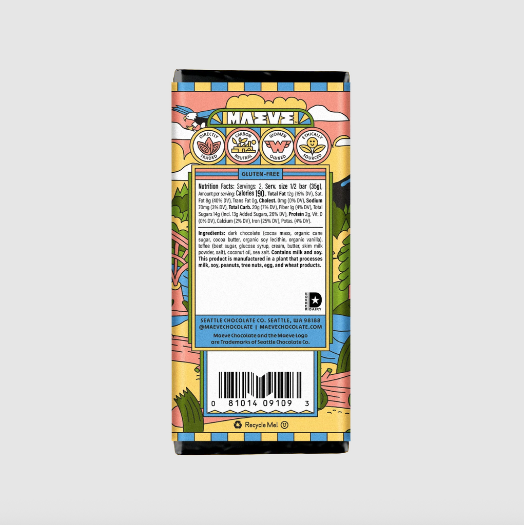 Good couples have a way of balancing each other out. Yes, We’re talking about when Salty met Toffee. Bits of crunchy toffee are layered in a swath of silky dark chocolate. A pinch of Pacific Sea Salt brightens the flavor and checks the sweetness in this dark chocolate toffee bar. What a pair!