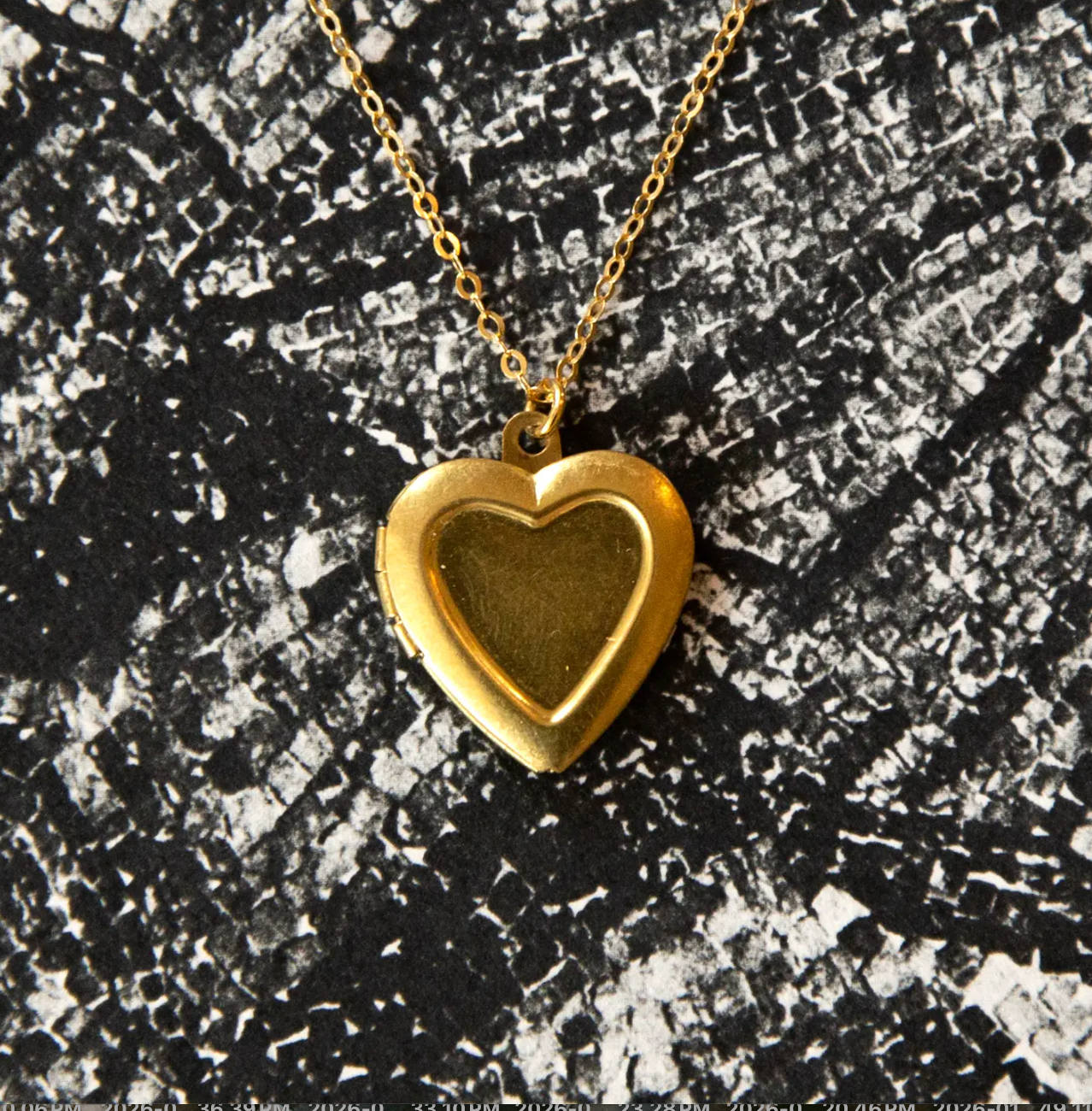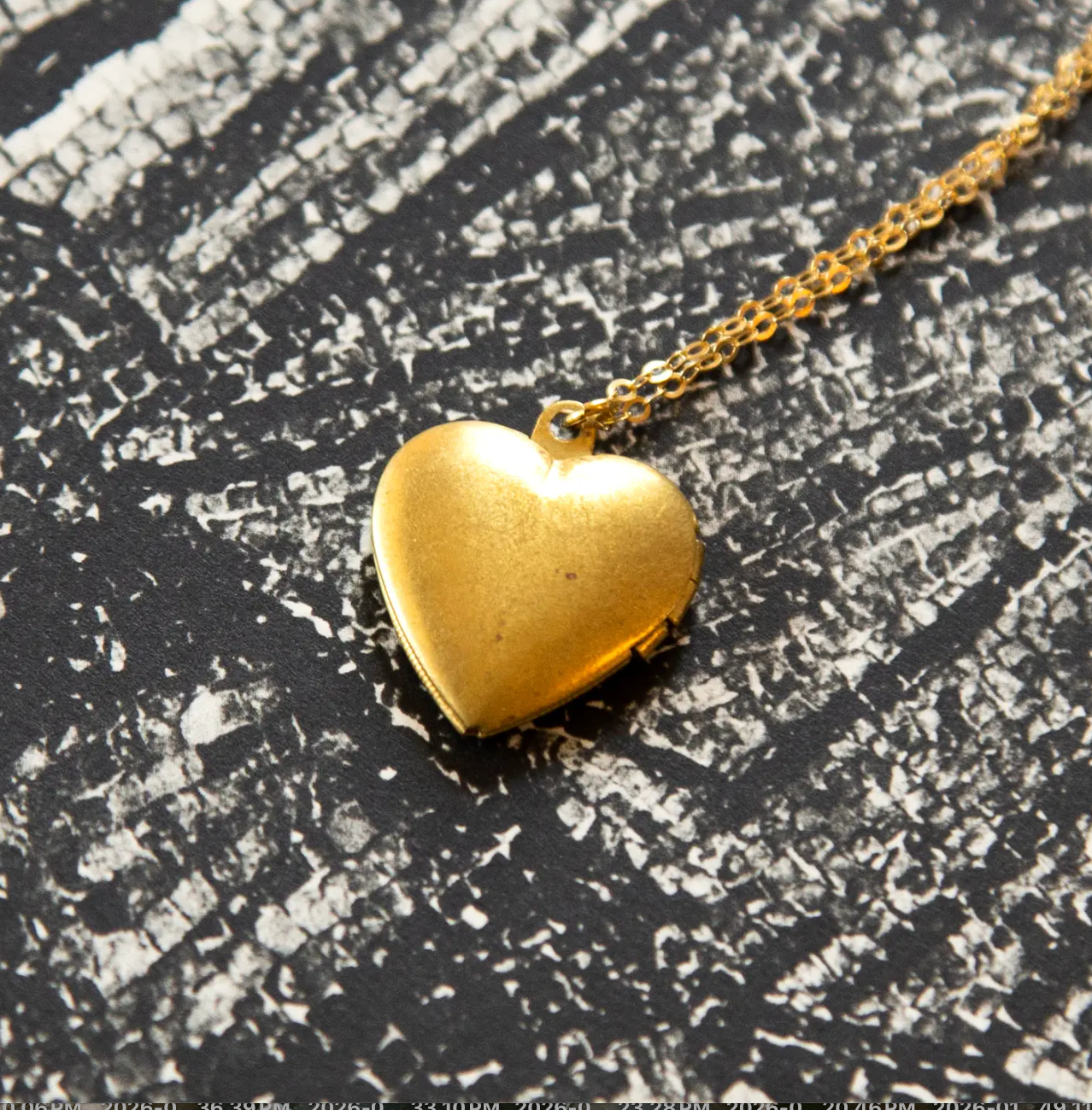Deadstock vintage simple brass heart locket charm on a high-quality gold vermeil (gold plated sterling silver) cable chain. Locket opens!