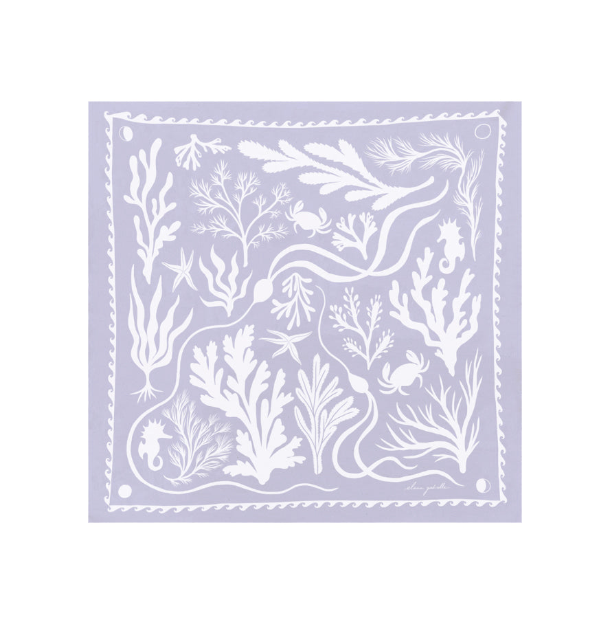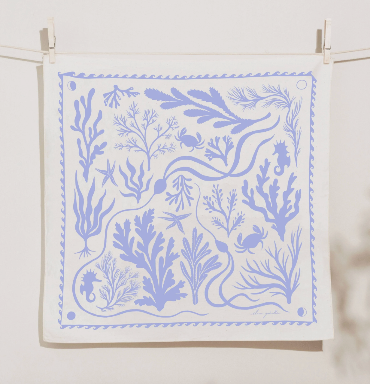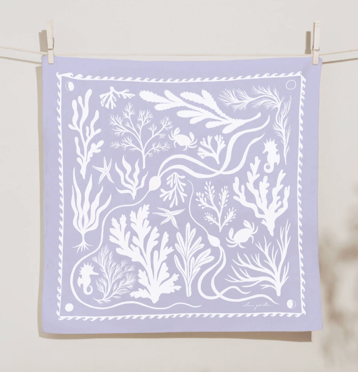 The Tides Bandana honors the power of the moon, the changing of the tides, and the seaweeds and small creatures that inhabit coastal tide pools.