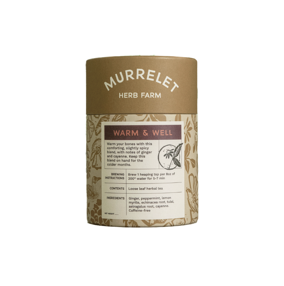 Formerly known as “Immunitea”, Warm & Well is a blend for any day! But when we’re feeling run down, we reach for a cup of this brew. This thoughtfully crafted blend features herbs selected to support the body and excite the palate. Spicy ginger and cayenne provide gentle warmth, while peppermint and lemon myrtle offer a refreshing lift. Echinacea, tulsi, and astragalus root work to nourish and fortify, making this a perfect addition to your routine.
