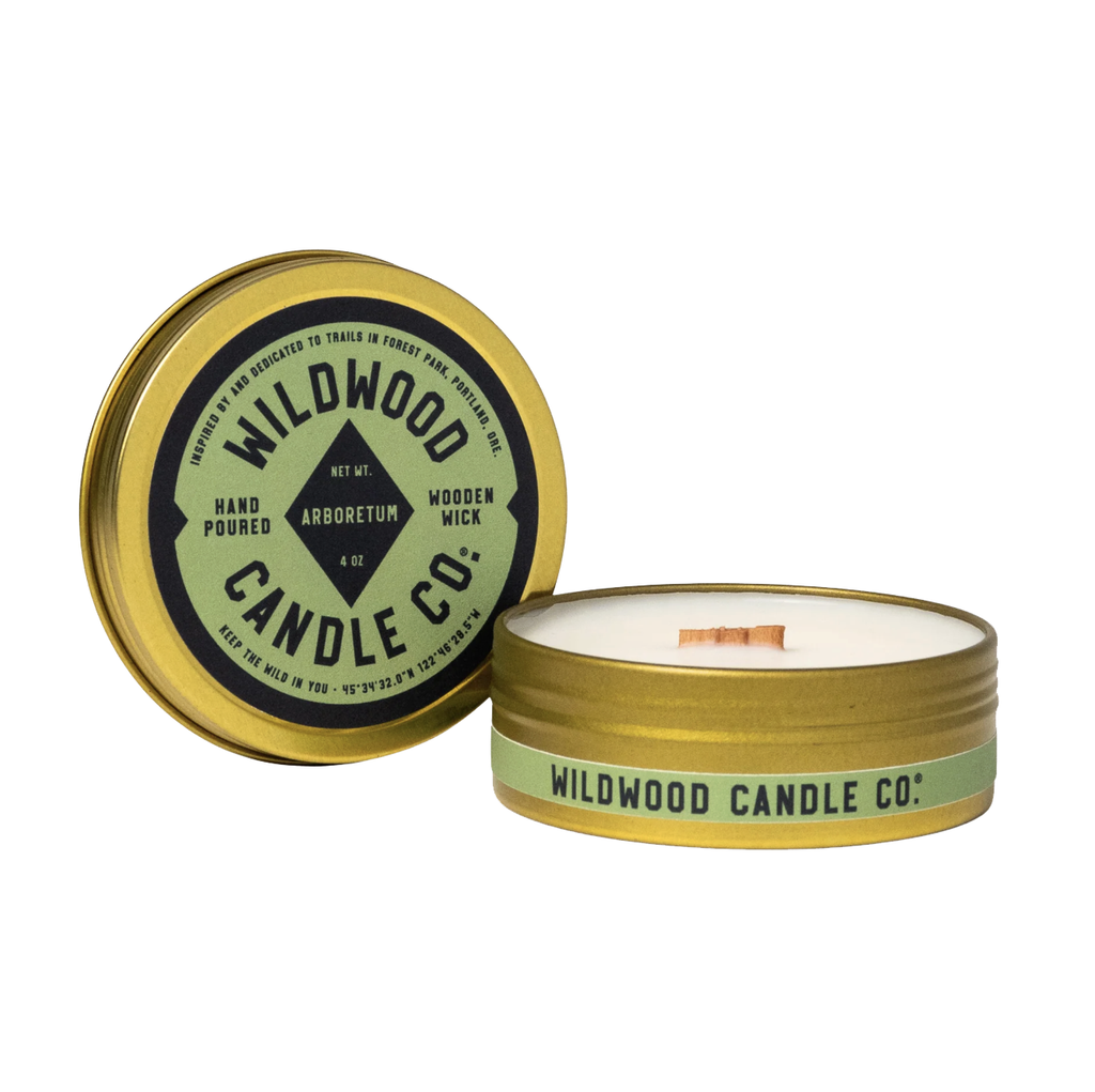 Our bestselling candles from Portland's Wildwood Candle Co. are now in a travel size! These candles are made with the same top quality soy wax, natural fragrances & FSC certified wooden wicks, but are in a travel-friendly non-breakable and lightweight metal screw top tin.